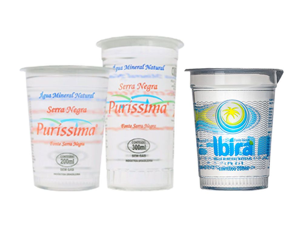 Caixas de Copo de Água Mineral de 200 ml e 300 ml das seguintes marcas: